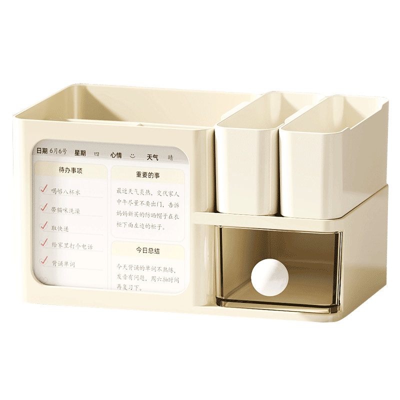 এর ক্রিমি রঙের শৈলী এবং সরল জ্যামিতিক আকৃতির কারণে অর্গানাইজারটি আধুনিক অধ্যয়ন ক্ষেত্র, গৃহ অফিস, কাজের স্টেশন এবং জীবনযাপন-সংক্রান্ত কোণগুলোতে স্বাভাবিকভাবে ফিট হয়। এটি বিভিন্ন ধরনের জিনিস সংরক্ষণের জন্য শুধুমাত্র কার্যকর নয়, বরং একটি আরও সমন্বিত ও পরিচ্ছন্ন দৃশ্যমান পরিবেশ তৈরি করতেও সাহায্য করে।