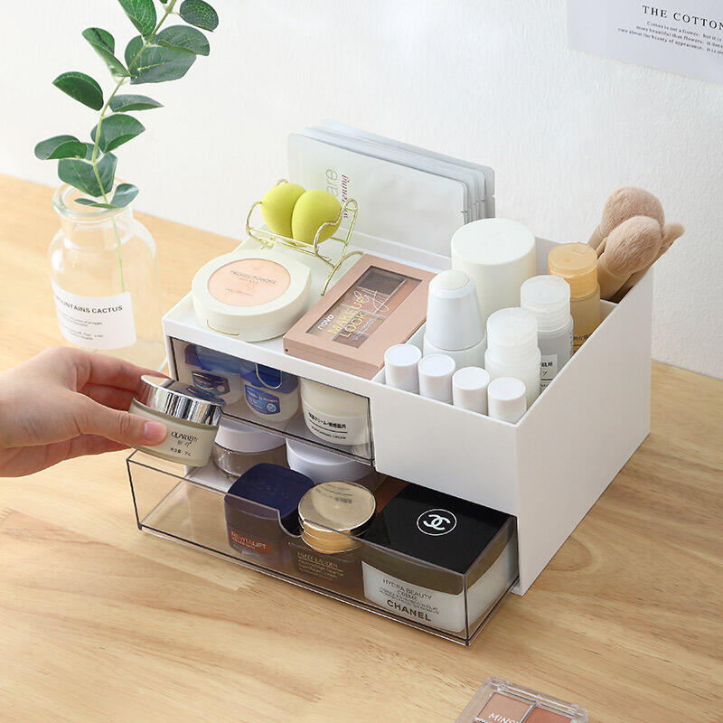 This product is especially useful for mixed-use organization. Cosmetics, skincare products, makeup tools, stationery, memo items, and small personal accessories can all be arranged in designated areas according to size and usage frequency. The open sections support quick access and visible storage, while the drawers below help reduce clutter by keeping smaller or less attractive items more neatly contained.