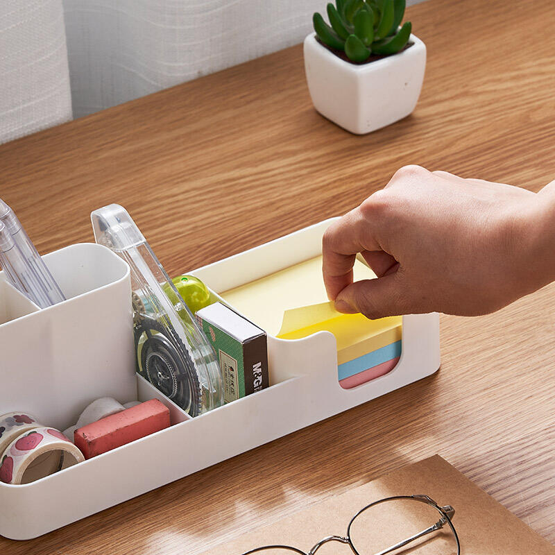 With its integrated memo pad section, open-top compartments, and compact body, it offers a practical and tidy storage solution for desks, study areas, and home organization use.